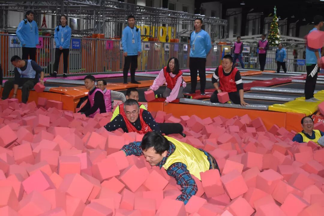 2019年12月27日,嘉恒图像全体员工来到位于朝阳的蹦床乐园,开展了一场趣味儿旅程。现场教练介绍完活动流程后,团队被分成了红、紫、蓝、黄四组战队,接下来四个队伍之间展开了能力与智慧的较量。整个过程中队员们不断突破自我,直面内心恐惧,队员之间互相支持,通力合作,使团队发挥出最大能量。